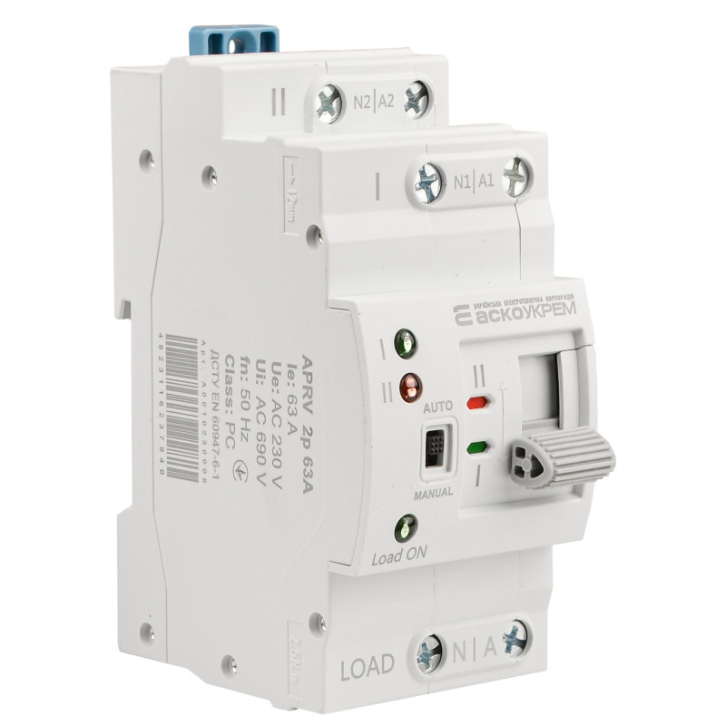 Призначення Автоматичний перемикач вводу (I-II) APRV 2p 63A ACKO Автоматичне перемикання вводів у разі зникнення/відновлення напруги живлення на пріоритетному вводі (I). Додатково перемикання між вводами (I-II) можна здійснювати у ручному режимі. Особливості конструкції Модульний компактний пристрій Автоматичний / ручний режим перемикання Простий в користуванні