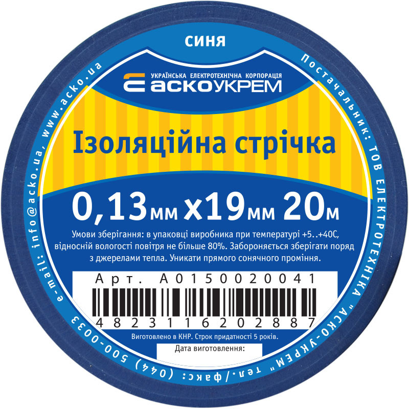 Стрічка ізоляційна 0,13мм*19мм/20м синя – Надійний Захист для Ваших Мереж