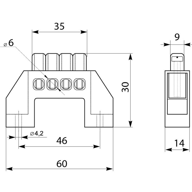 - Універсальність: З 4 отворами розміром 6x9 мм шина підходить для підключення провідників різних перерізів, роблячи її універсальним вибором для різноманітних електромонтажних робіт.