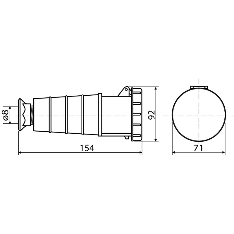 - Висока потужність: Здатність працювати зі струмом до 32 Ампер робить цю розетку незамінною для промислових верстатів, будівельної техніки, зварювальних апаратів та іншого енергоємного обладнання.